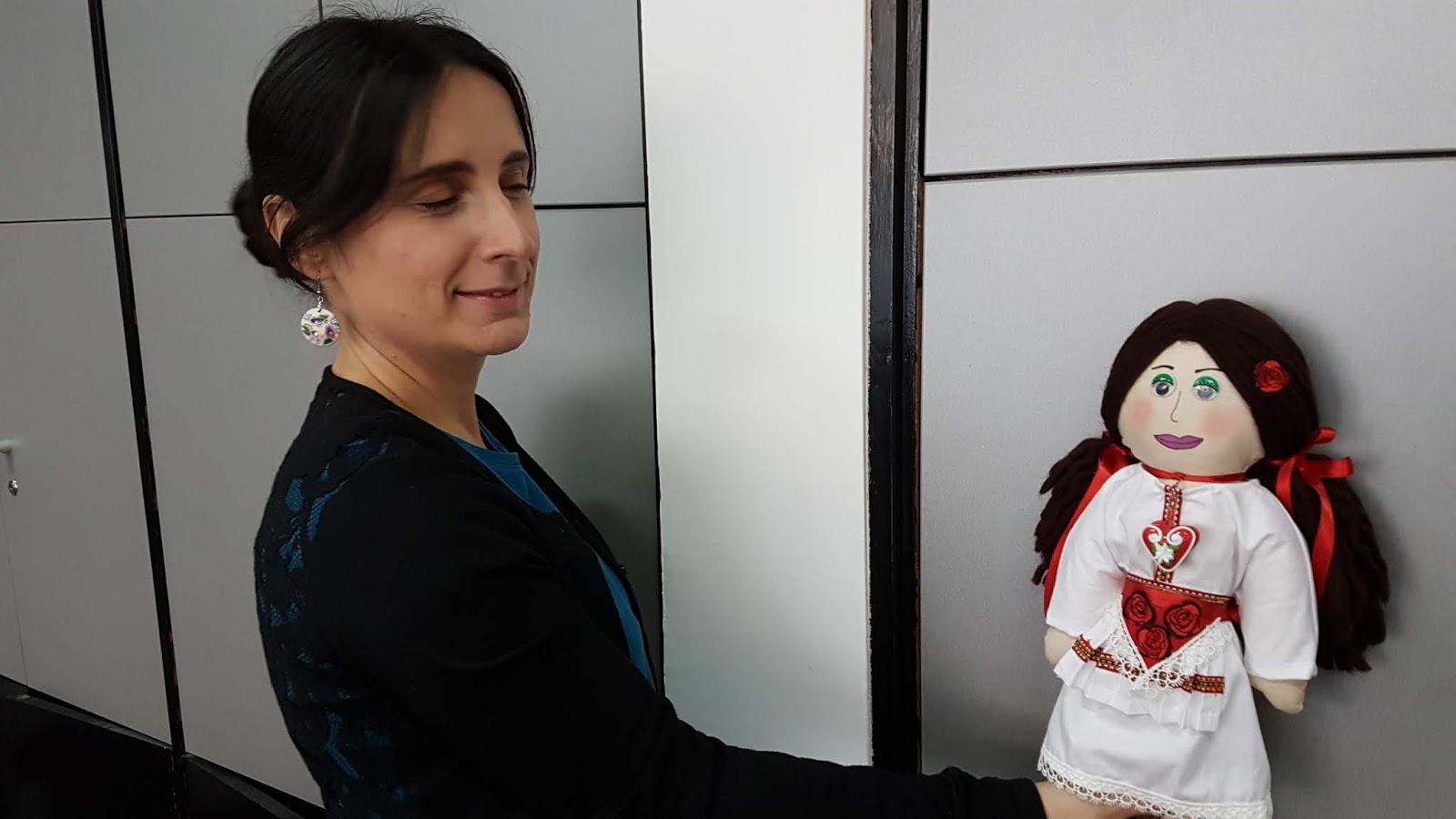 I was realized by teacher Gabriella and her students of Class Two of the primary school in Montorio Romano. They were very happy and proud to make me and everybody was very careful and focused on me in every step of my realization: from the fabric selection to the written text they created to retell the specific procedure followed to realize me.
